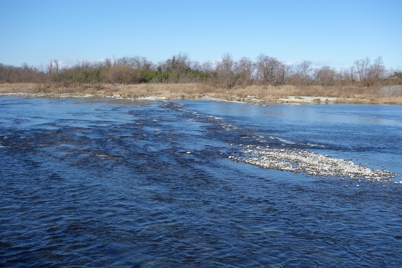 堰堤があっても上流側はこれだけ浅い。