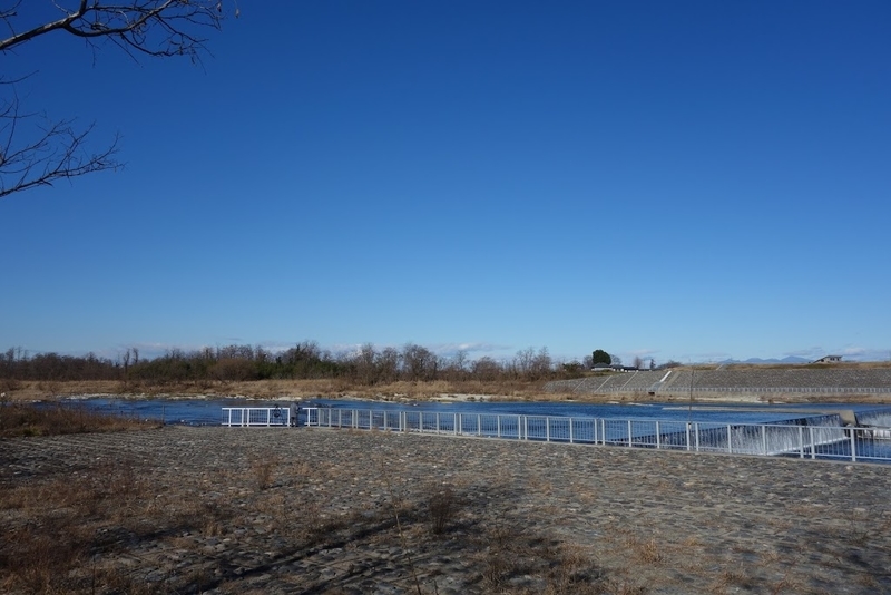 鹿島古墳公園を離れて、畠山重忠史跡公園を訪ねたあとに、言われたとおり荒川の上流側にかかる県道69号線の橋へ向うと、その北側に岸辺に人影があった。