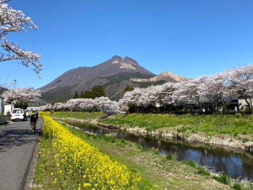 前回の由布市ツーリストインフォメーションセンターではレンタサイクルがあったので、一時間半ほど回ってみました。 駅から南に向かうとすぐに大分川沿いの見事な桜並木に出くわし、思わず歓声が出ました。 川面近くにも降りられます。 勇壮な由布岳と。 由…