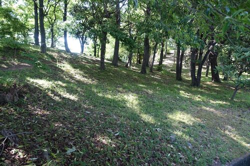 誉田御廟山古墳の拝所入口から振り返った北側にあるのは全長110mの前方後円墳、大鳥塚古墳。 前方部左裾側から。左奥が後円部。 間の道路が、藤井寺市と羽曳野市の境になっています。 墳丘の東側の回って、前方部の右裾あたりの解説板。 大鳥塚古墳国史跡 19…