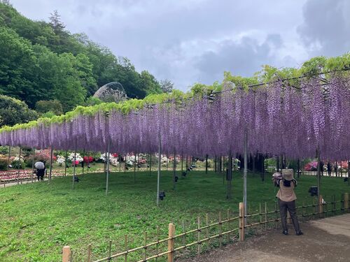 5月2日、あしかがフラワーパークを家族で訪ねました。 北千住で東武特急に乗り換えて1時間程で足利市駅へ。そこから渡良瀬川を渡ってJR足利駅から一駅乗って。 中橋が架け替え工事中でした。 そのおかげで(?)今だけ通れる最短での人道橋を渡りました。 足…