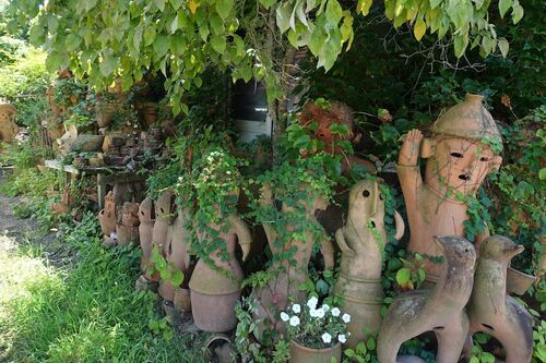 平塚古墳からは真壁街道を南西へ。 県道41号との交差点にある、以前から気になっていたお店・はにわの西浦に寄りました。 お店の前から。奥が県道41号「つくば益子線」、左からが真壁街道。 木造2階の建物も文化財級では。手前が鋭角で、遠近感がバグります…