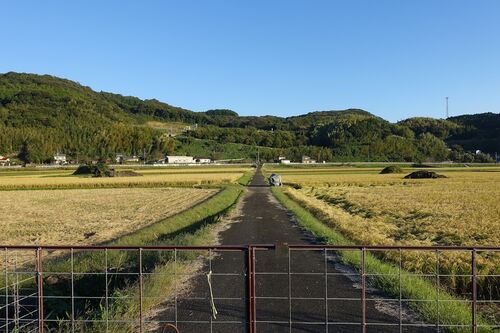 芦辺港へ向かう途中に立ち寄ったシオユカケ古墳が、今回の古墳旅の最後の古墳となった。 壱岐島を毛細血管のように覆う小道(車道)のひとつ。 竹林を透かして盛土のようなものが見えるが、密生度が高く入れる感じはなかった。 左を見ながら坂を下っていくと…