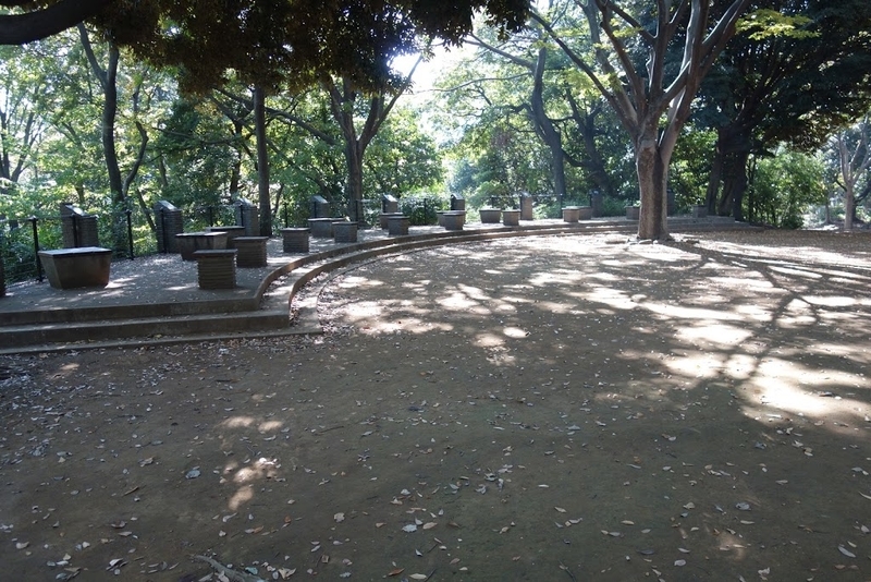 保育園の子供たちで賑わう芝公園。奥の森が古墳。
