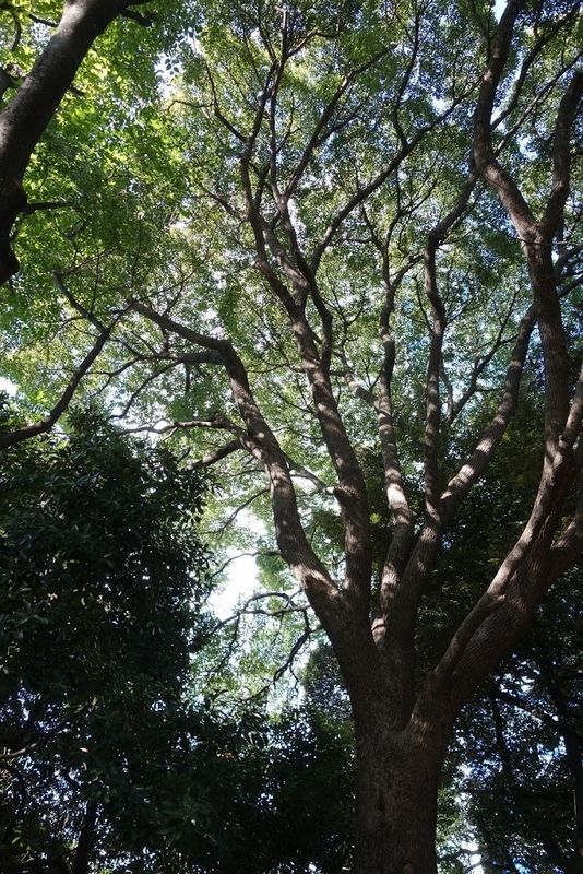 写真には写らなかったが、後円部から大木の枝葉を透かした後ろにプリンスのタワーホテルが聳えていた。