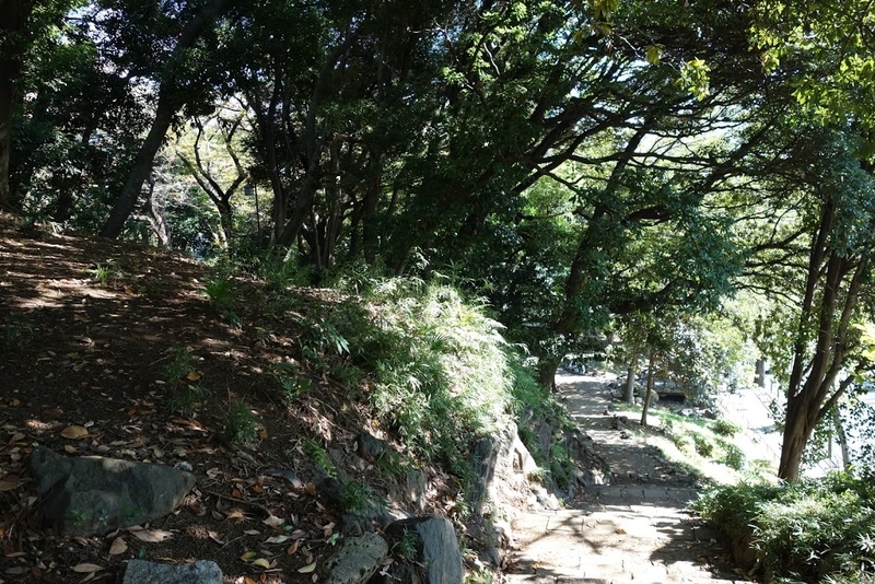 公園広場側から後円部への上り口。「前方部を南南西に向けている」ので、後円部は北北東を向いていることになる。