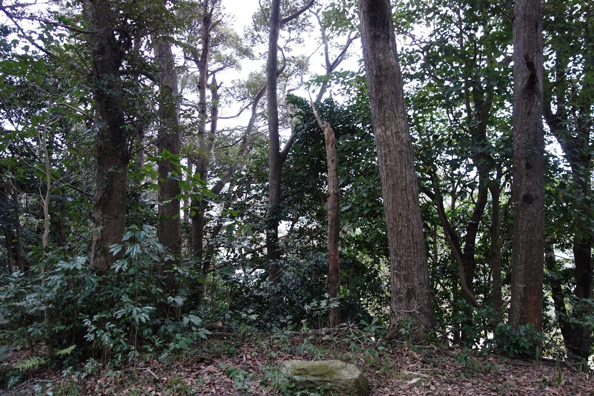 少し降りて振り返って。右上あたりに離山古墳があると思われます。