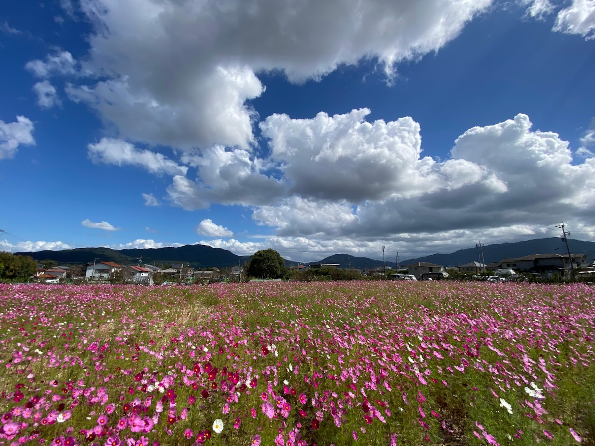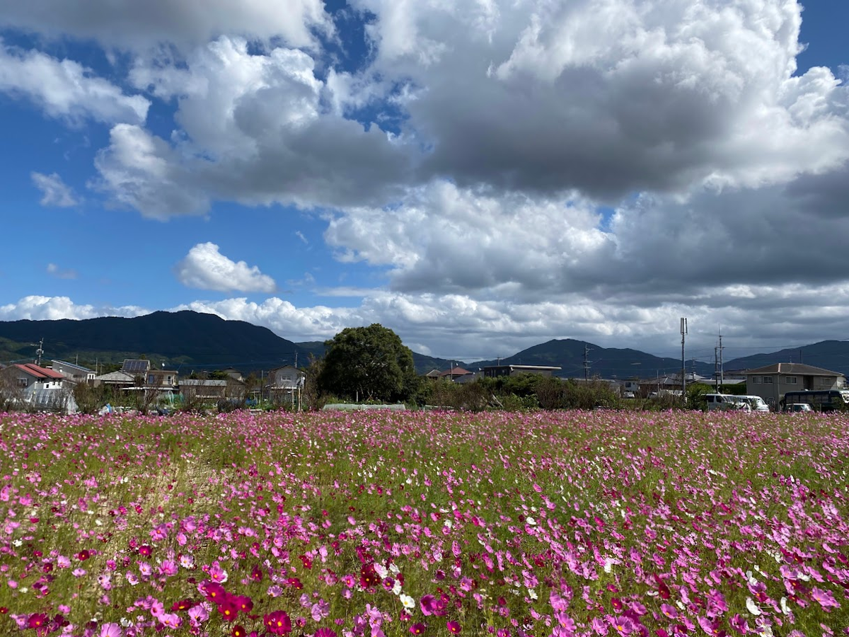 道路(平原国宝通り)の東側に広がっていたコスモス畑。