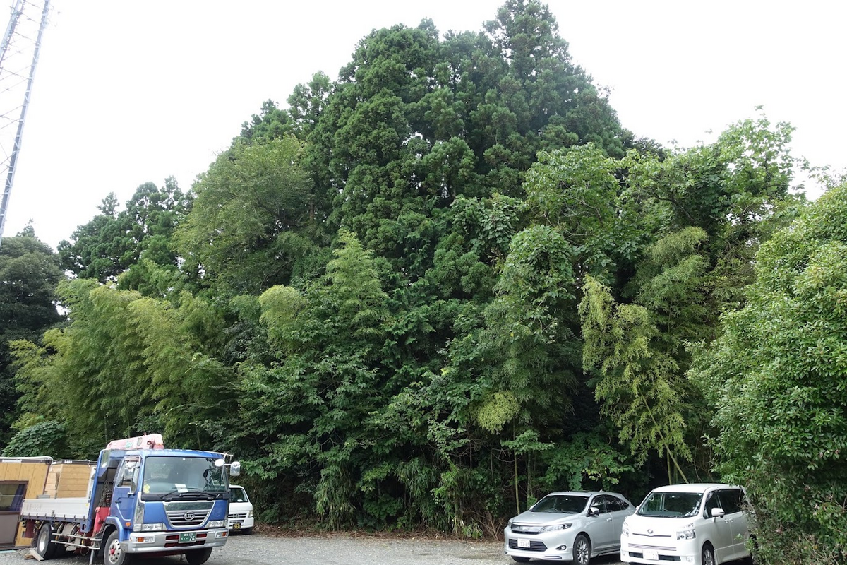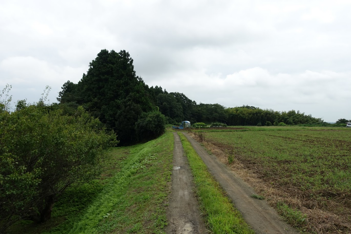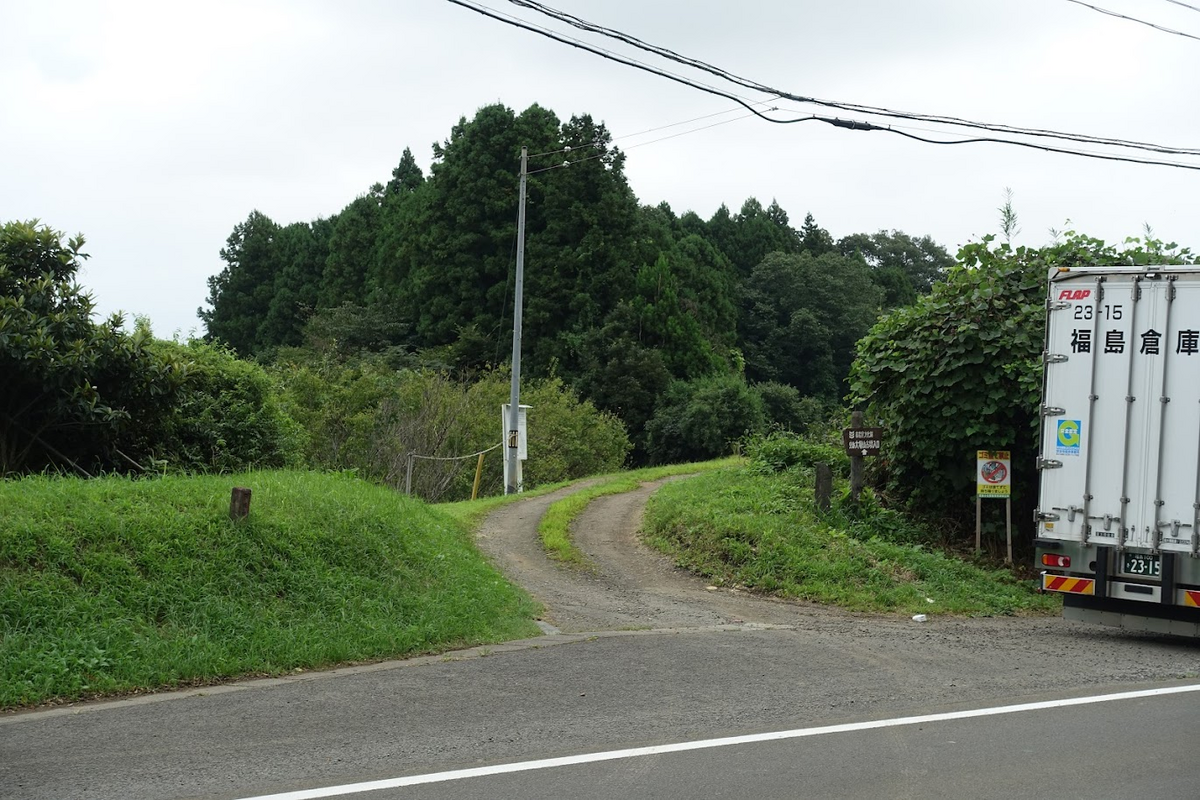 そのまま農道をおそるおそる200mほど進むと墳丘の前に。1,2 台なら停められました。