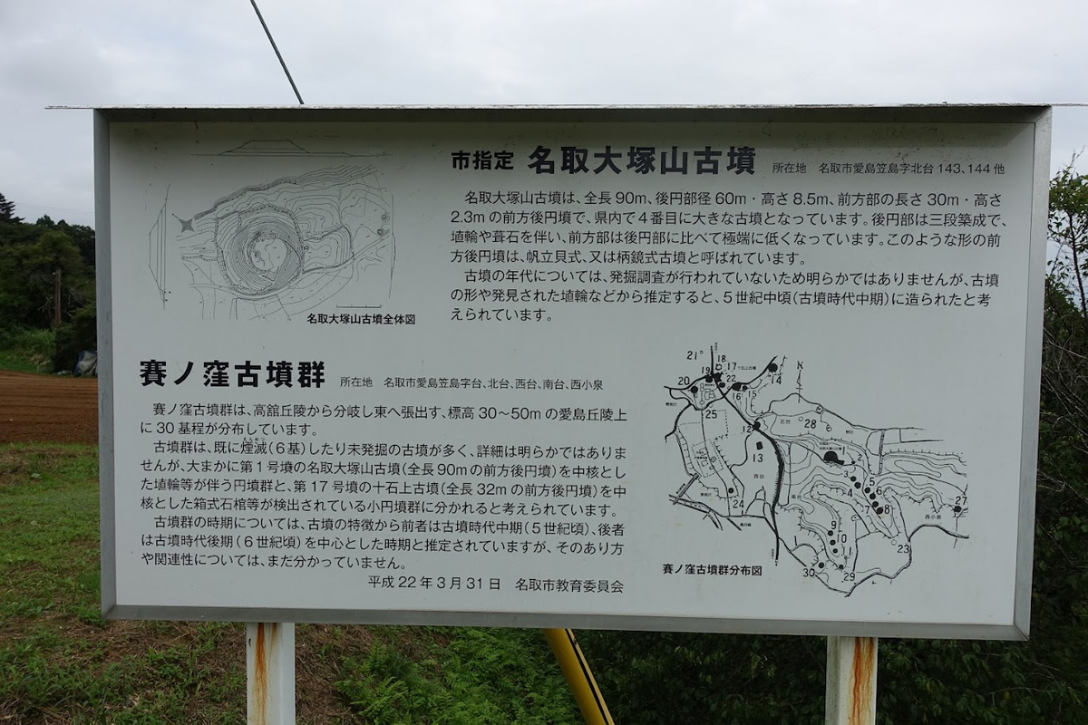 名取大塚古墳は、愛島丘陵の根元側で30基ほどを擁する賽ノ窪古墳群の盟主墳。