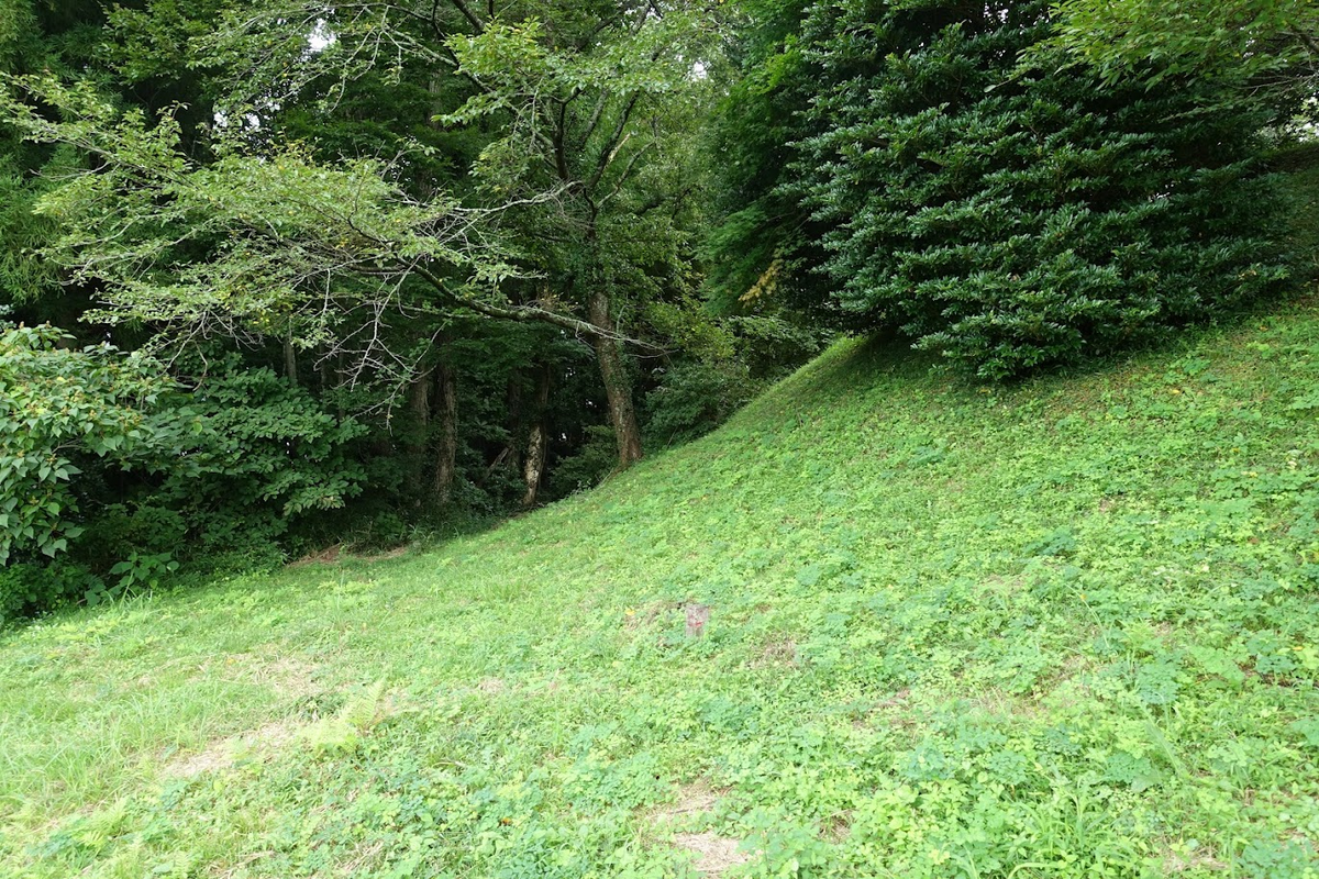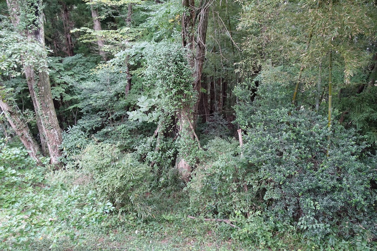 墳頂から東側斜面を見下ろして。この右(南東側)が前方部だったのですが撮っておらず…