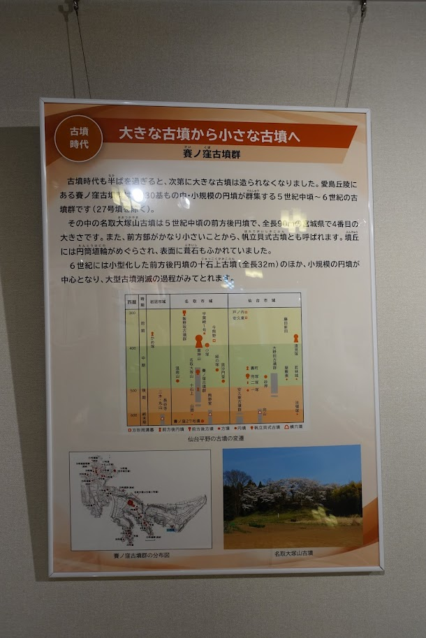 のちほど訪ねた名取市歴史民俗資料館での、賽ノ窪古墳群の解説パネル。