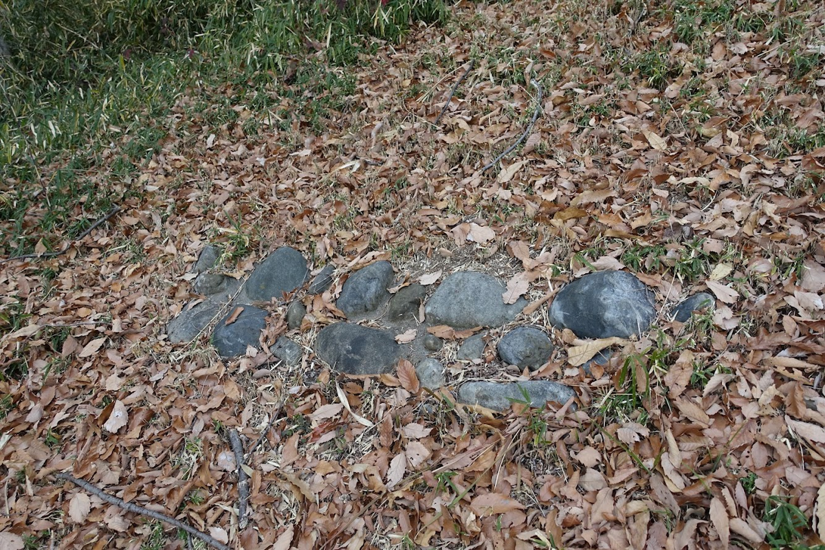 河原石を並べた箇所が3つ。