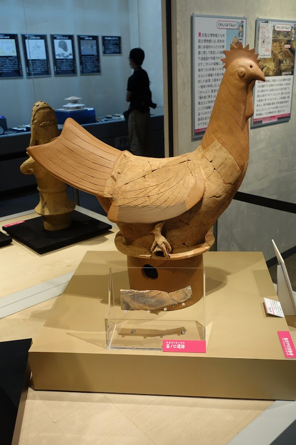 赤堀茶臼山古墳の鶏形埴輪ですが、3㎞離れた釜ノ口遺跡から出た破片(羽先)がぴったり接合したとのこと。