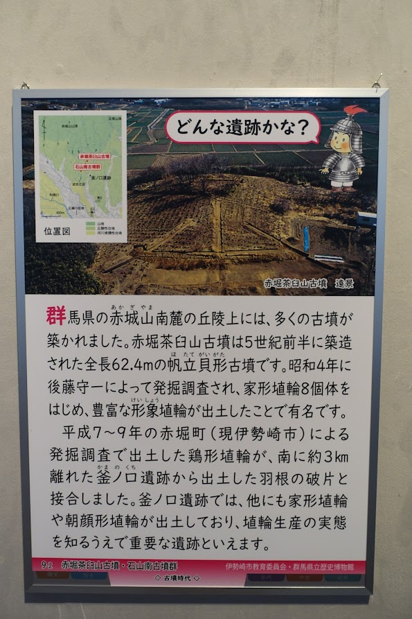 展示会場の中央で目立っていたのは、赤堀茶臼山古墳・石山南古墳群(群馬県)の埴輪たち。