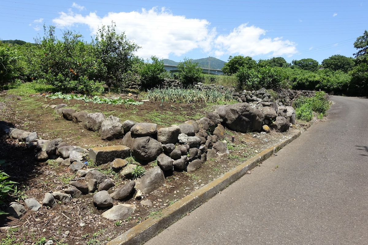 北側の道路脇。大きな石も。