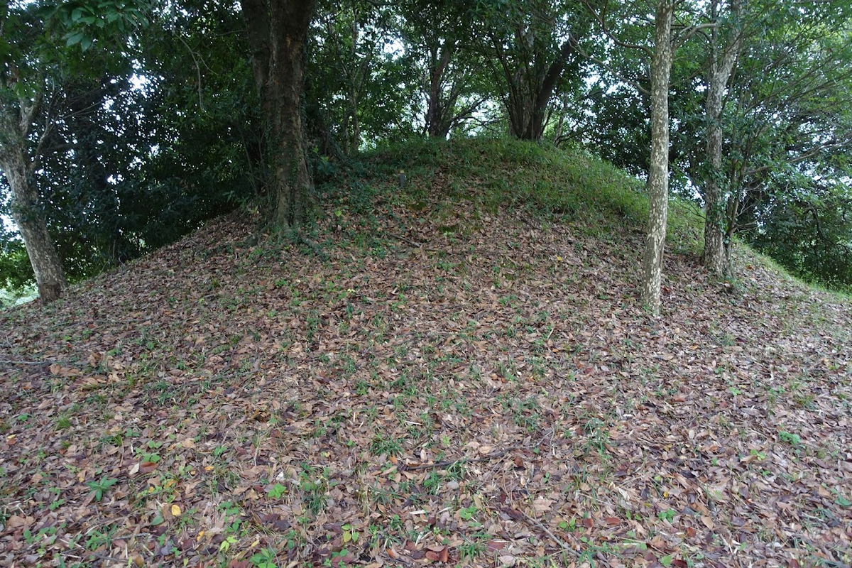 説明板の後ろが後円部でした。ぴょこんと高さがあります。
