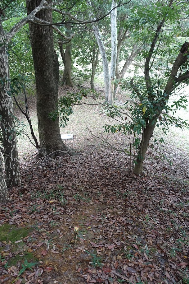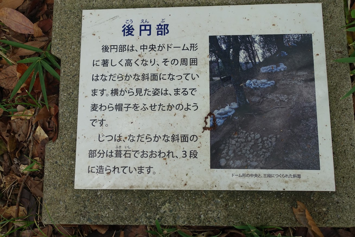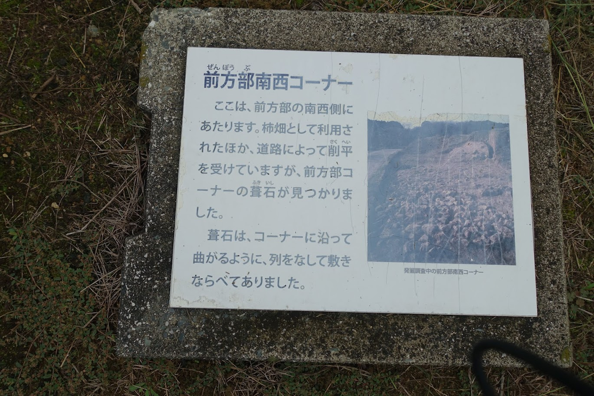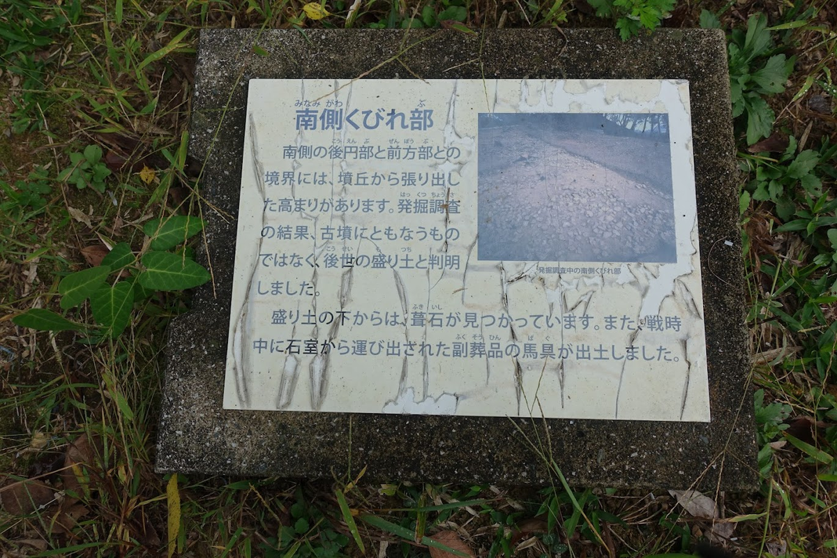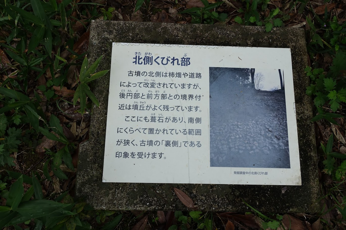 北側を後円部に向かって進むと、くびれ部に説明板。