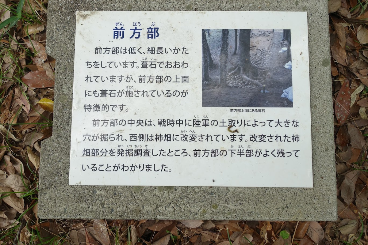外に出て前方部へ戻っていると、また地面に解説。