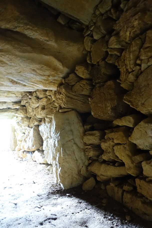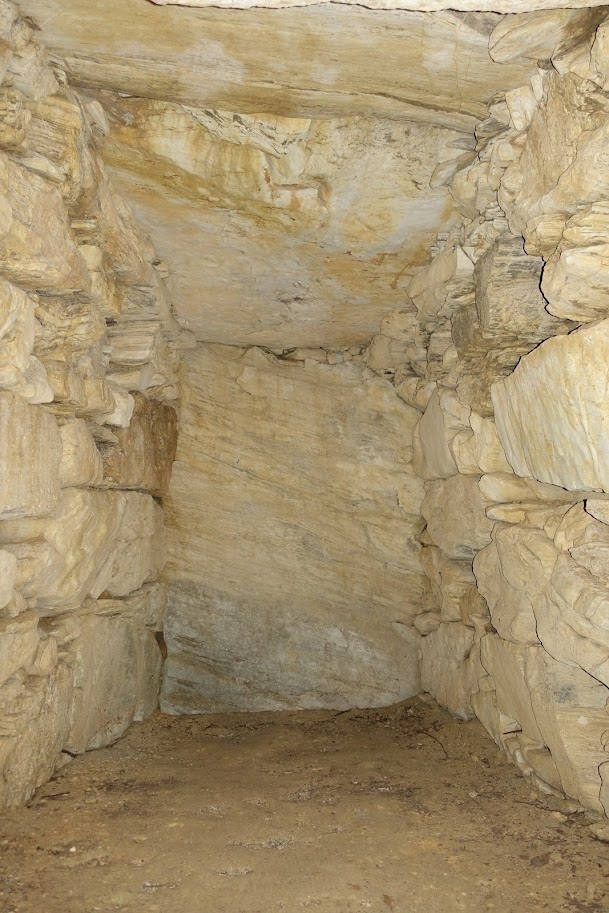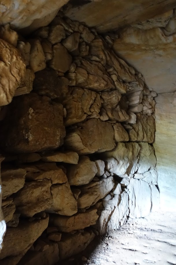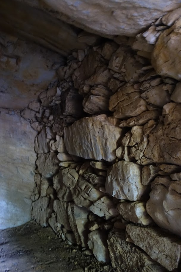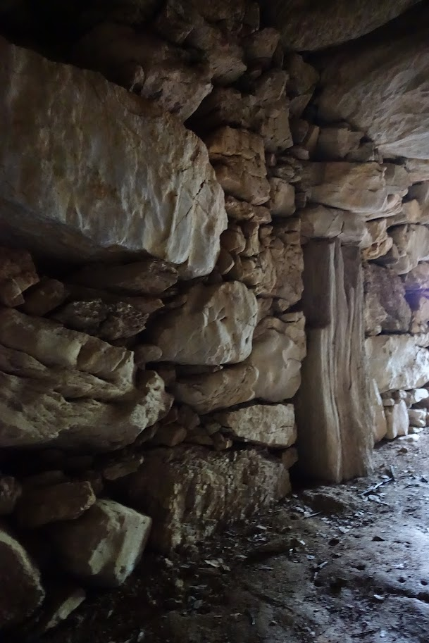 左右の側壁にはさまざまな大きさの石が積まれていますが、室内側の面は平らです。