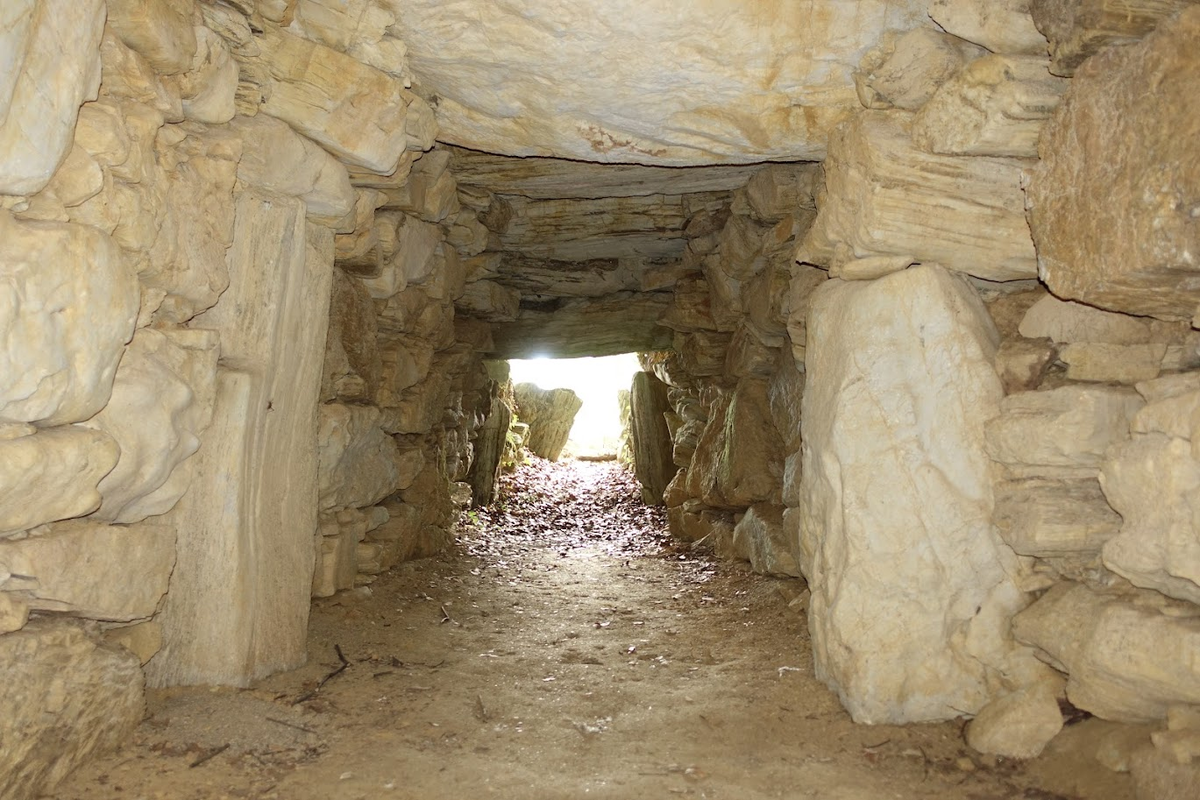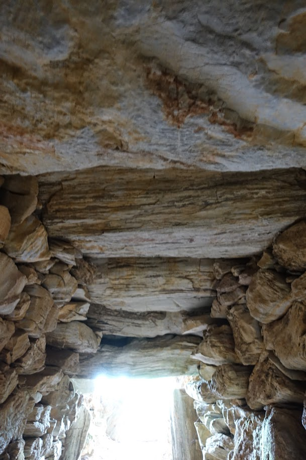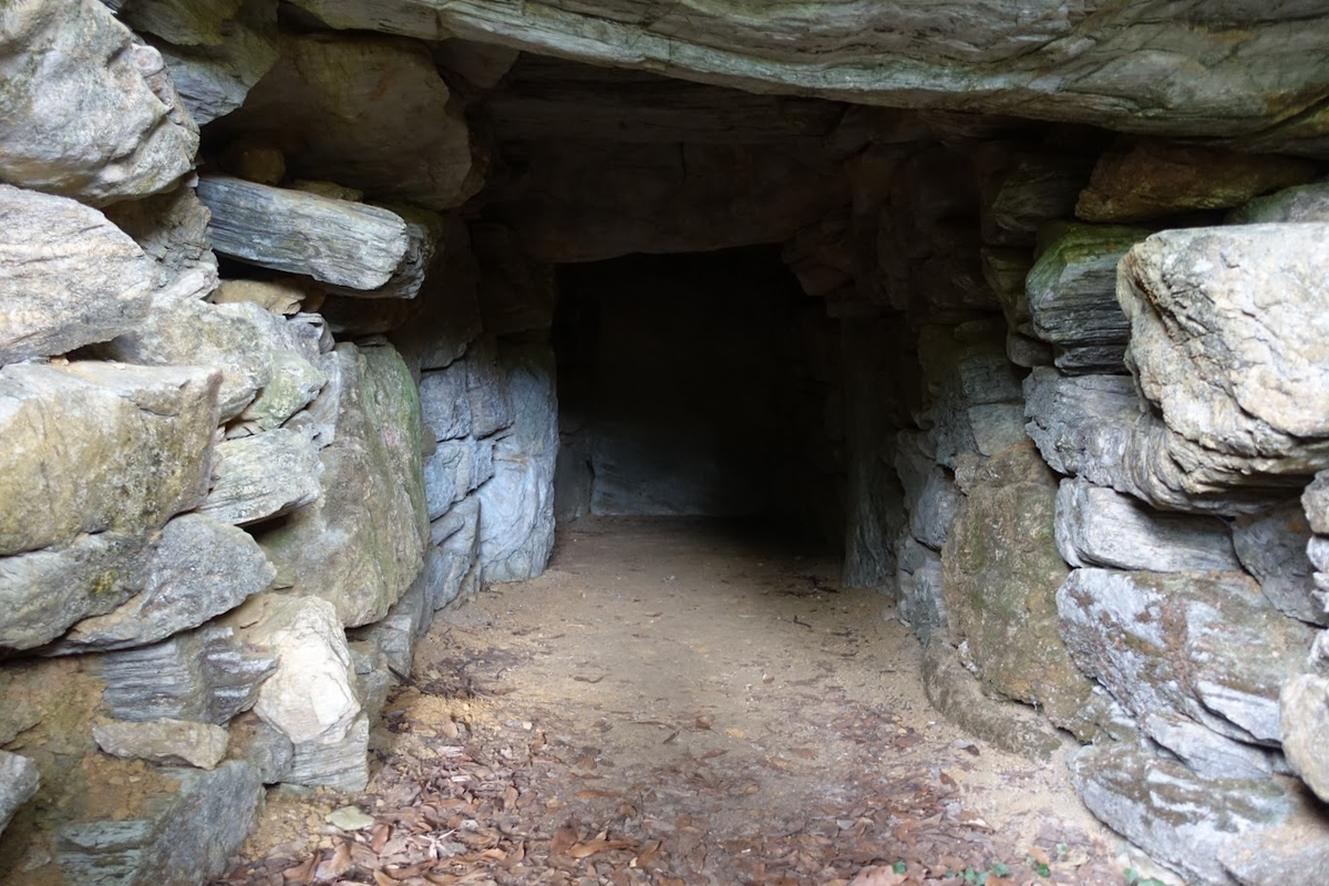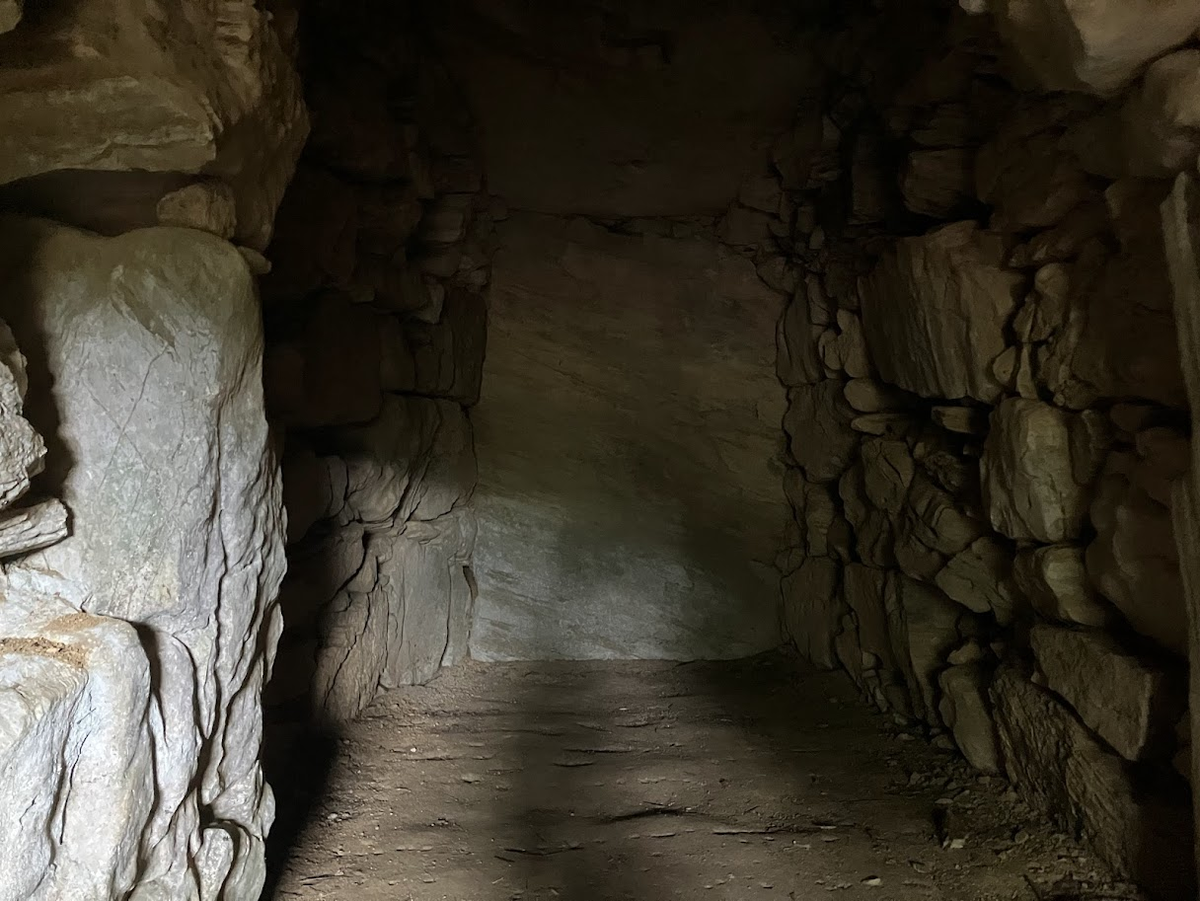 左右の側壁にはさまざまな大きさの石が積まれていますが、室内側の面は平らです。