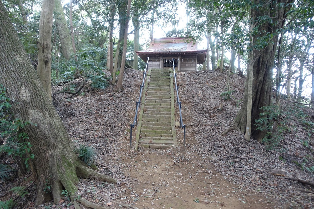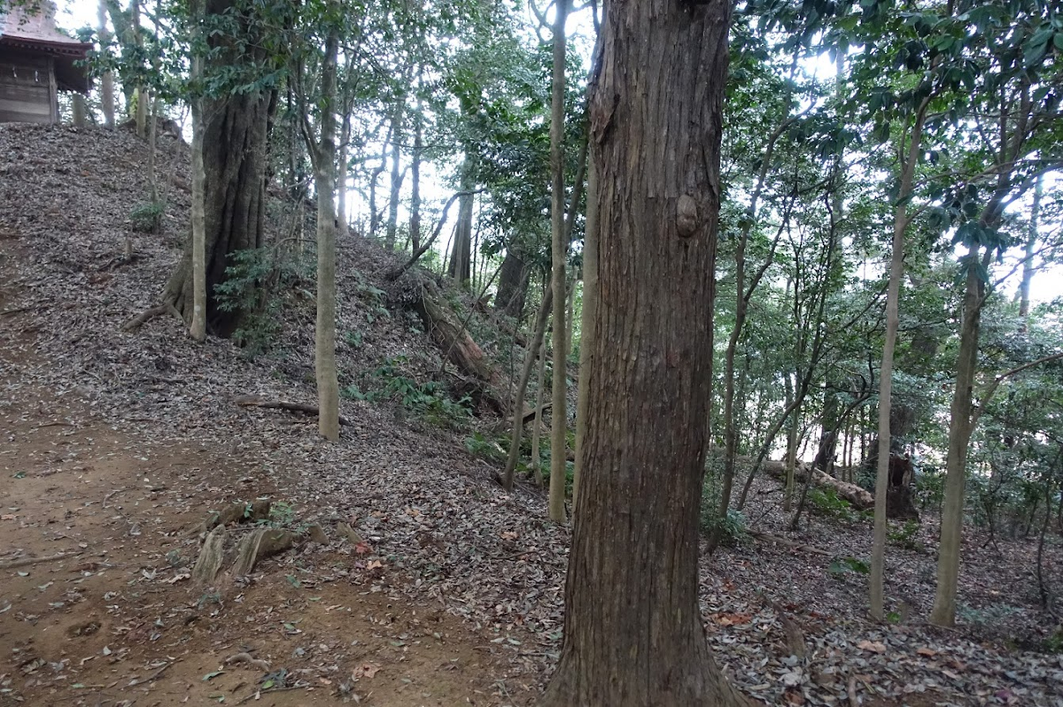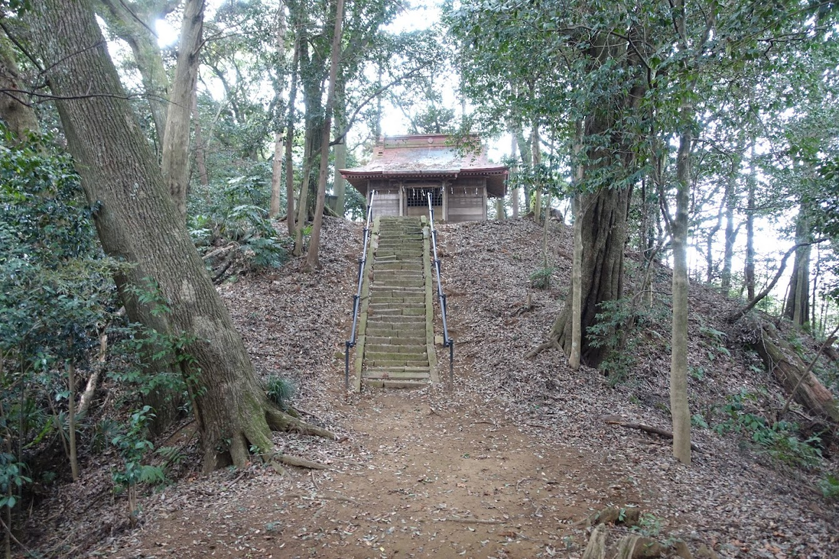 大字市川の6号国道沿線にあり、樹木に覆われた延長63mの前方後円墳で、村内最大級の規模である。前方部が低く、5世紀前期の古い形式に属すと言われている。高さ8mの後円部墳丘は、直径16mの平坦地で熊野権現が祀られてある。