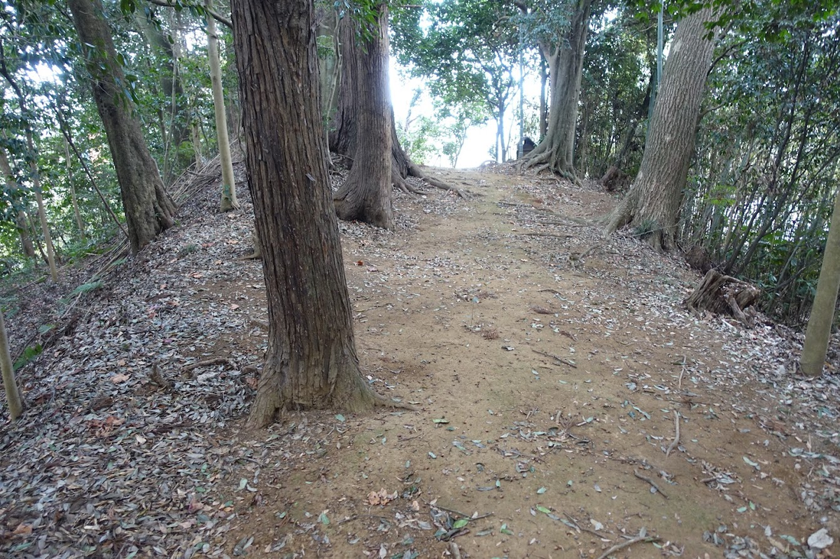 北西側は上がって来た道。中央の電柱奥の木立の蔭に筑波山でしょう。